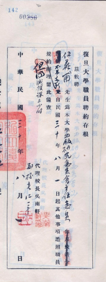 伍蠡甫教授担任出版研究委员会主任委员的聘书