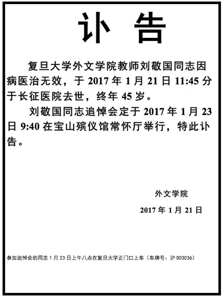 刘敬国同志讣告