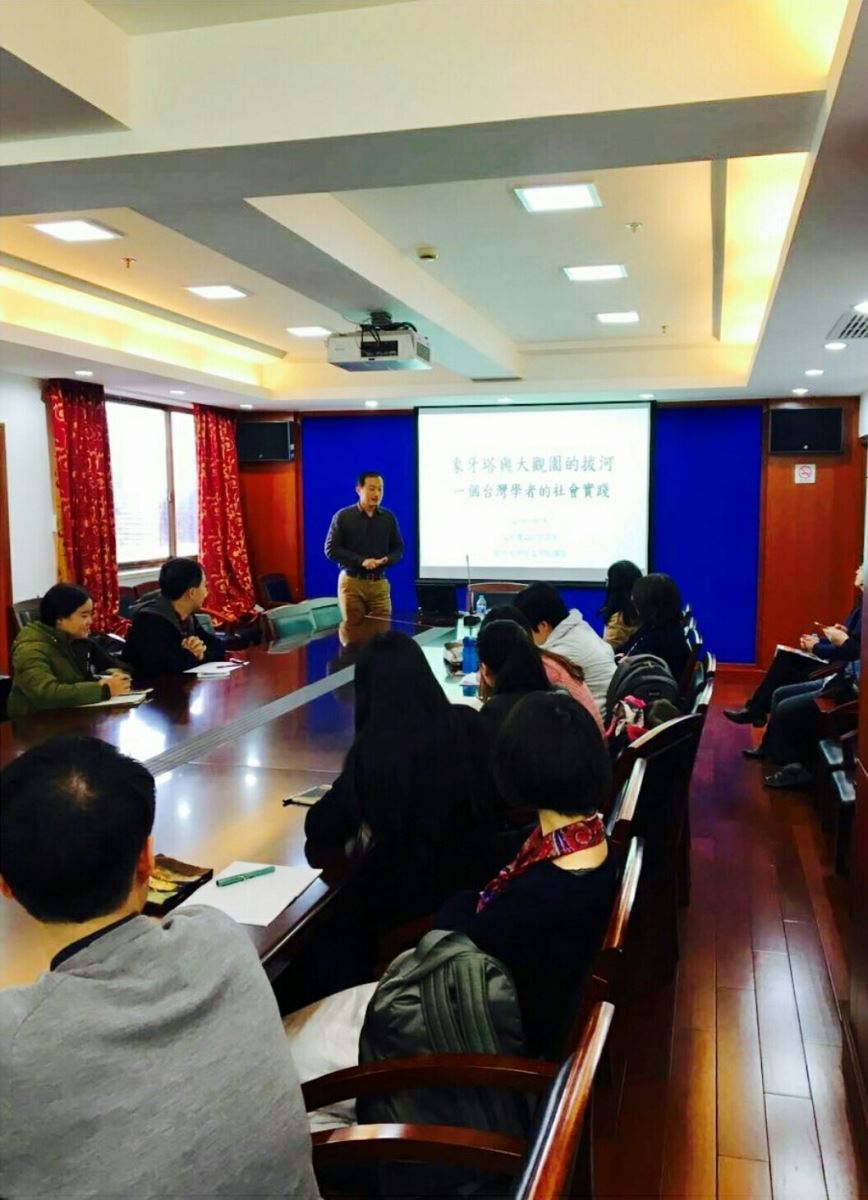 曾老师首先介绍了台湾人文学科的学术生态环境,包括教师晋升的考核指标和相应程序,教学、科研、公共服务和社会工作之间的关系,台湾的学术期刊分类,以及教师和学者面临的种种压力和选择等。曾老师结合自己的切身实践和体会,和大家集中探讨了在校园的象牙塔中潜心钻研与在社会的大观园中发挥影响之间存在的张力,以及平衡两者的重要性与可能性。