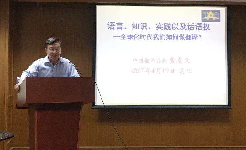 2017年4月19日下午13:30- 16:00,中国外文局原副局长兼总编辑、中国翻译协会副会长兼秘书长、MTI教指委主任委员黄友义教授应邀做客复旦大学外文学院,为英文系、翻译系师生带来精彩讲座。讲座由副院长卢丽安教授主持。