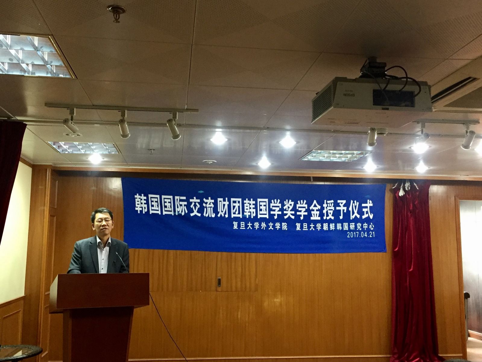 2017年4月21日上午,韩国国际交流财团韩国学奖学金授予仪式在复旦大学文科楼209会议室如期举行。
