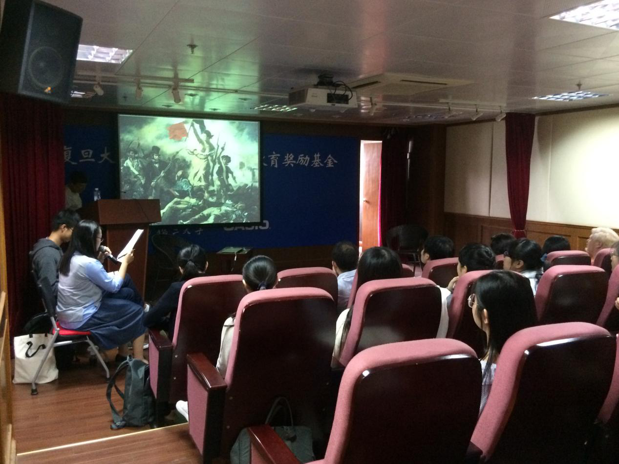 2017年9月29日,法国当代哲学家、巴黎高等师范学校教授、前哲学系主任Claude Imbert教授应邀来我校外文学院做题为《Delacroix, aquarelles du voyage au Maroc: une clé analytique(德拉克洛瓦,摩洛哥之行的水彩画:一把分析的密钥)》的精彩讲座。讲座在文科楼209会议室举行,由外文学院法文系外教Gaultier Roux博士主持,由法文系研究生程毓凝、张颉文进行现场翻译,吸引了复旦大学各院系众多师生参加。