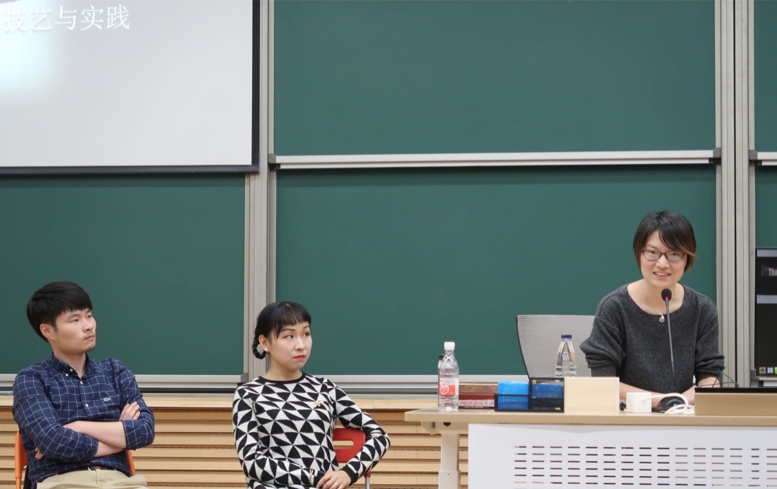 最后一部分,也是讲座最为关键的内容——制作手抄本的实践。胡葳博士在专攻文学之余,还是一个手抄本制作爱好者。首先,她向大家一一介绍了制作手抄本所用的材料:羊皮纸、墨水颜料、装饰金箔、鹅毛笔。接着,她以自己的三幅作品为蓝本,展现了手抄本是如何诞生的。包慧怡老师也分享了自己在都柏林大学攻读博士期间制作手抄本的经历,再现了那段趣味盎然亦不乏辛劳的历程。羊皮手抄本是有灵之物,它的厚重融合了生命的鲜活和文化的灿烂。