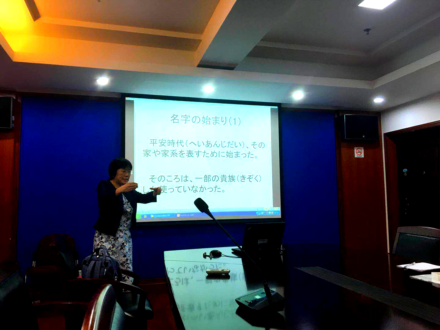 2019年6月5日晚,日文系于文科楼220成功举办讲座《日本的休闲文化研究》。讲座的开始由主持人日文系副教授赵彦志老师为我们介绍了本次讲座的主讲人泽田依子老师。2000年已来到中国工作的泽田老师依次为我们讲述了日本人的名字(みょうじ)、便当文化、妖怪、家徽,忍者、茶道、等多种多样的日本休闲文化。虽然讲座整个过程都是用日语进行的,但是老师肢体语言丰富,幽默风趣,演讲方式多样(在介绍妖怪部分时给同学们当场听了「ゲゲゲの鬼太郎」的歌曲,近身体验日本妖怪文化),学生们都听得入迷并且积极地跟老师互动。讲座举行了一个小时后大家合影结束。