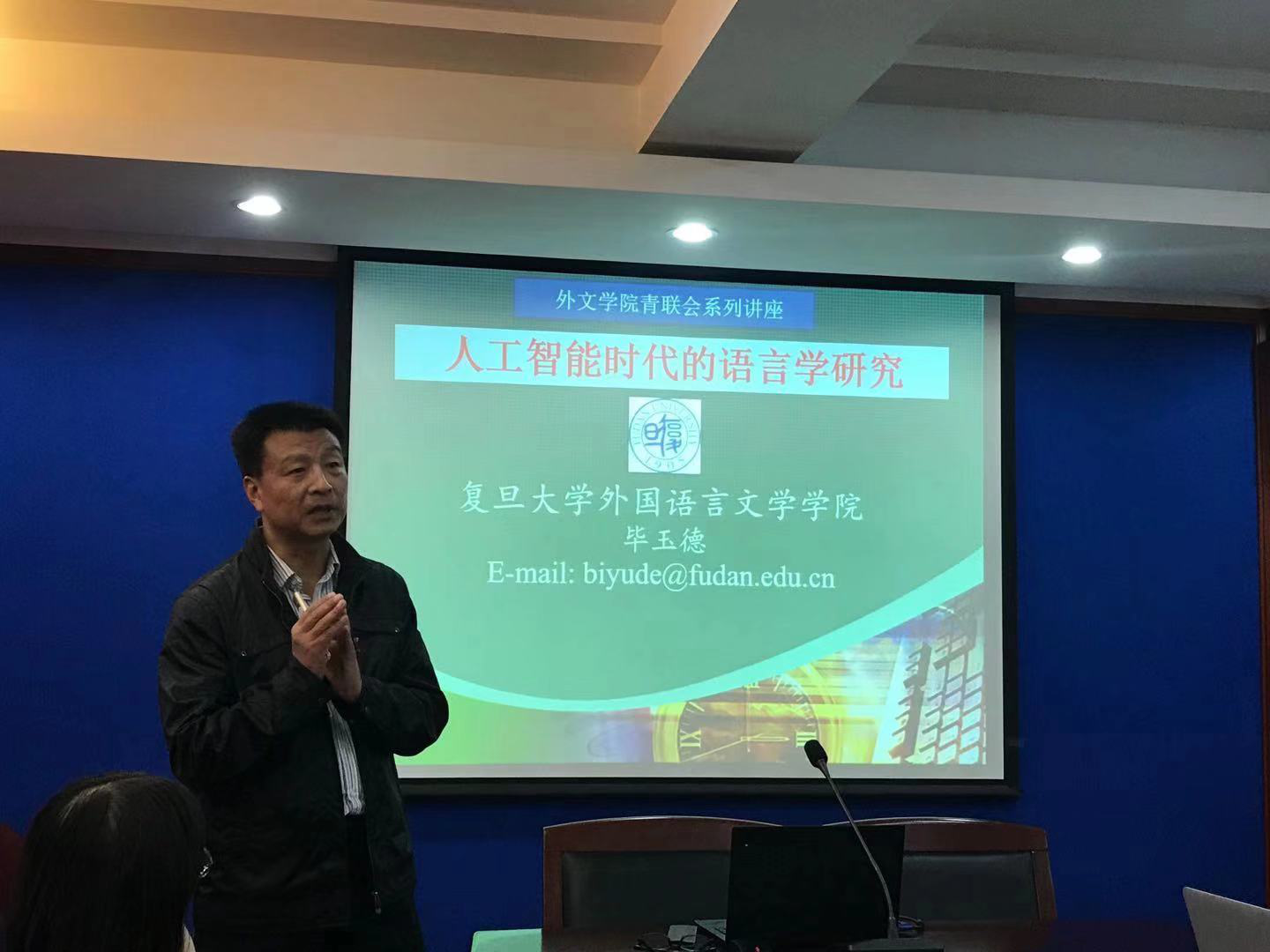 2019年10月22日下午,外文学院青联会邀请leyu乐鱼·官方web站登录入口韩文系毕玉德教授作了一场题为“人工智能时代的语言学研究”的学术讲座。