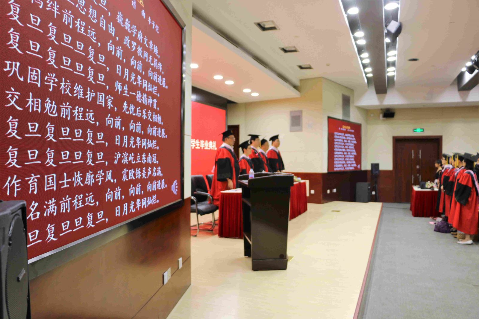 毕业典礼在全场师生的校歌声中落下了帷幕。