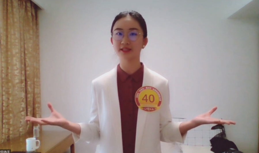 (舒玥同学在线参加“外研社•国才杯”学术英语演讲专项赛)