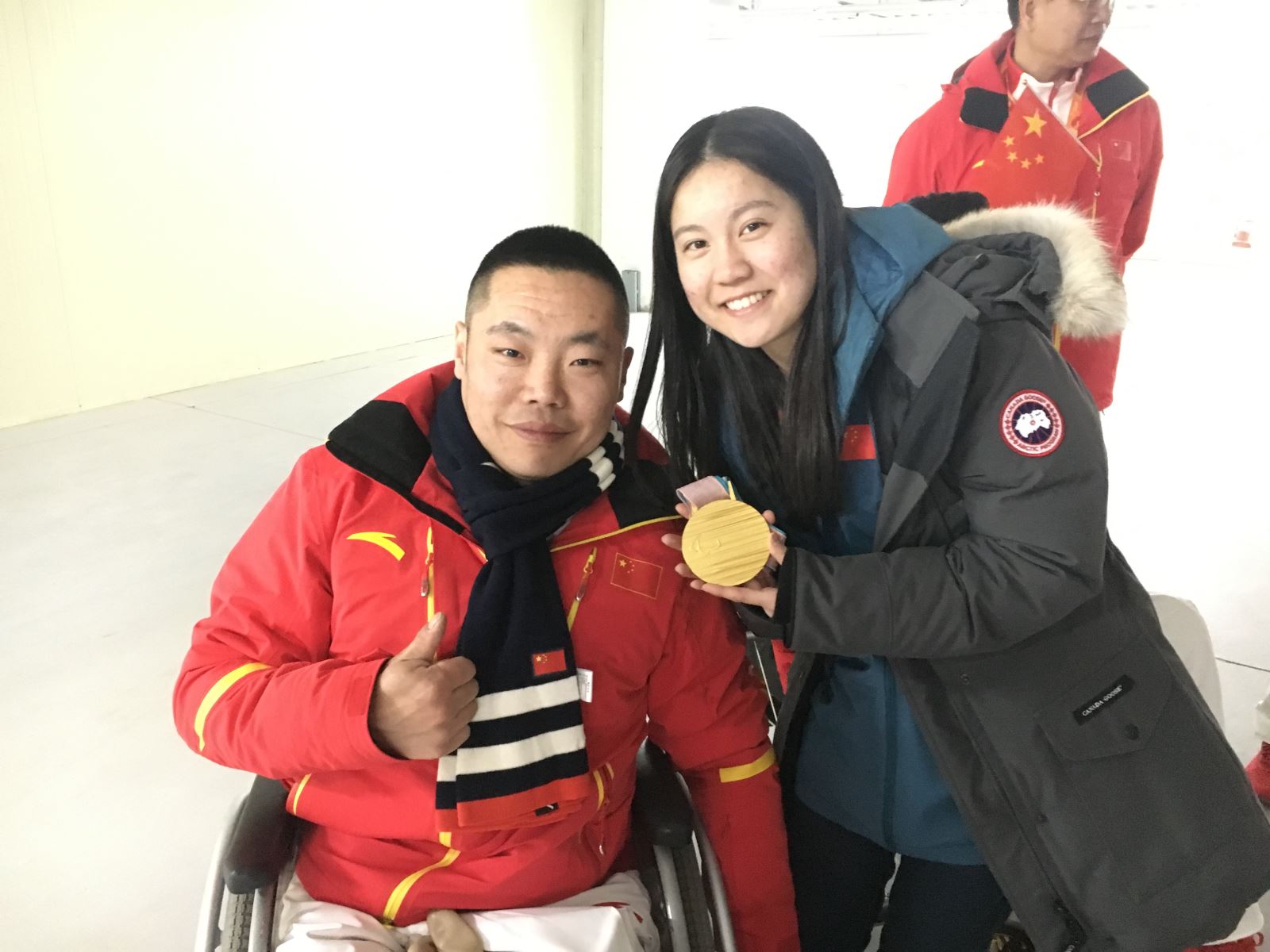 这次的中国冰壶队从最初的循环赛开始就有很大的压力,他们在索契取得了第四名的好成绩,这次如果夺得奖牌,将是中国代表团历史上第一枚残奥会奖牌。虽然面临压力,但是在赛场上,队员们都保持沉着冷静,打出了一个又一个的好球。每天晚上,当比赛结束之后,只有中国队坚持在空无一人的冰场上练习,正是凭借这种坚持、刻苦的精神,冰壶队最终夺得了那枚宝贵的金牌。作为一个中国人,作为中国队的志愿者,我很自豪能够为这样团队服务。