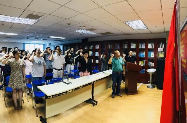 2018年6月26日下午,外文学院党委在文科楼424会议室举行师生党员入党宣誓暨重温入党誓词仪式。学院党委领导、教师党员代表、学生党支部书记、学生预备党员、毕业生党员参加仪式。宣誓仪式由学院党委副书记 赵昕 主持。