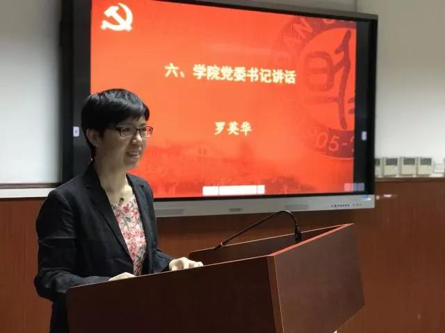 最后,学院党委书记 罗英华 为全体师生党员上党课。她介绍了入党宣誓仪式的背景和意义,并表示,时值建党97周年之际,通过回顾建党历程,重温入党誓词,要求每一位党员要做到不忘初心,牢记党对自己的要求,牢固树立并不断增强党员意识。她从一大会址和南湖红船的意义与地位谈起,结合“红船精神”即建党精神,回顾中国共产党97年的发展历程,重点阐述了共产党的初心和使命是“为中国人民谋幸福,为中华民族谋复兴”。在新时代,党仍面临着诸多考验、风险和挑战,更需要全体党员不忘初心,牢记使命,坚定信念,百折不挠。她传达了焦扬书记给毕业生上的思政课精神,勉励毕业生党员传承和发扬复旦人追求真理、家国天下、开放自由和自强不息的基因,不忘中国共产党人的初心、复旦大学的初心以及青年人的初心,带着自信拥抱新时代,带着理性认识新时代,带着责任建设新时代。她指出“共产党员”和“复旦人”是我们共同的身份,不忘初心、牢记使命,就要在思想上、行动上彰显“党员印记”,号召全体师生党员坚定信仰,努力践行,牢记自己第一身份是党员,把党章立于心中,立足岗位做贡献。学生党员要做“爱国、励志、求真、力行”的模范;教师党员要带头强化“两个所有”的意识,在师德建设中发挥先锋模范作用。她勉励党员特别是毕业生党员传承复旦基因,彰显“复旦印记”,用行动体现复旦精神,用业绩体现复旦气质。以青春之我,奋斗之我,为民族复兴铺路架桥,为祖国建设添砖加瓦。