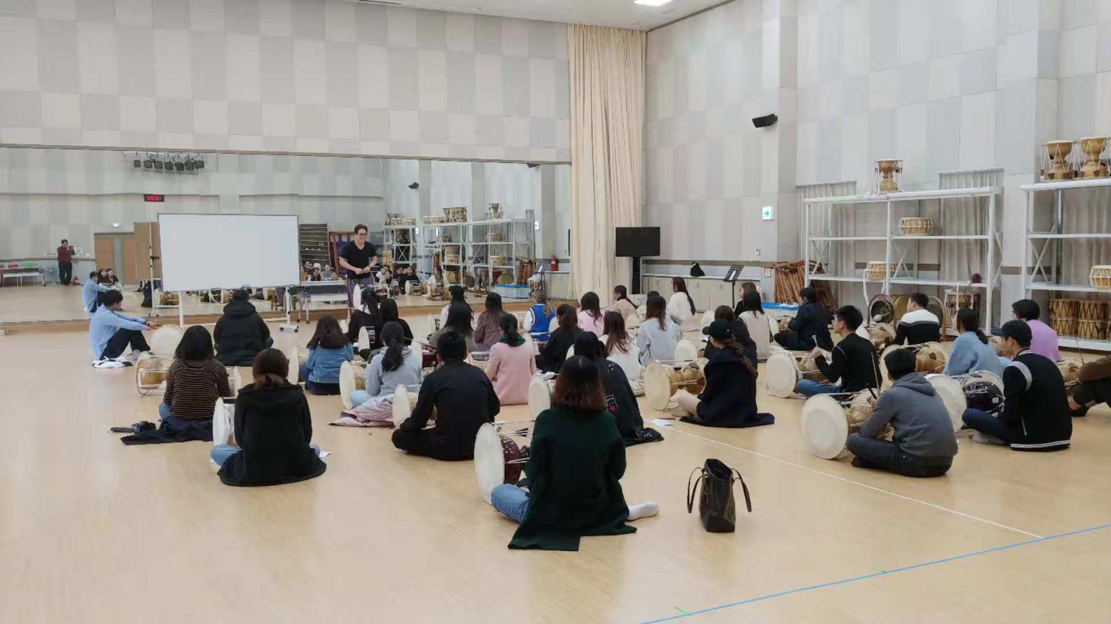 传统民谣,四物农乐等作为韩国文化的重要组成部分,具有重要的历史文化价值。11月9日下午,韩文系师生到达珍岛,稍作休整便投入到了珍岛阿里郎的学习中。老师耐心地将这首歌拆分成很多个小片段进行教学,让这首歌变得简单起来。晚饭后,大家一同前往礼堂观看了韩国传统舞蹈表演。三位舞蹈家轮番上场表演了各种韩国传统舞蹈,精彩的表演赢得了阵阵掌声。表演结束之后,大家又前往舞蹈教室,一起学习了韩国传统舞蹈江江水月来。江江水月来是韩国人在中秋时节最爱跳的转圈舞,没有人数限制,大家都可以围成一圈享受跳舞的乐趣。