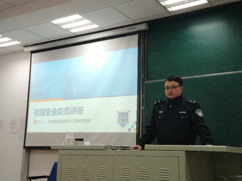 接下来,潘警官为大家介绍了和校园安全关系紧密的防火知识,并提醒同学们在宿舍不要使用违规电器,不要长时间不拔充电器、发现电路老化及时报告。