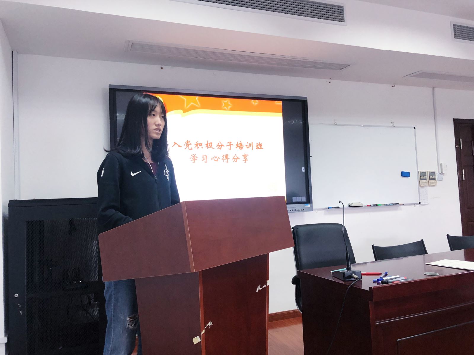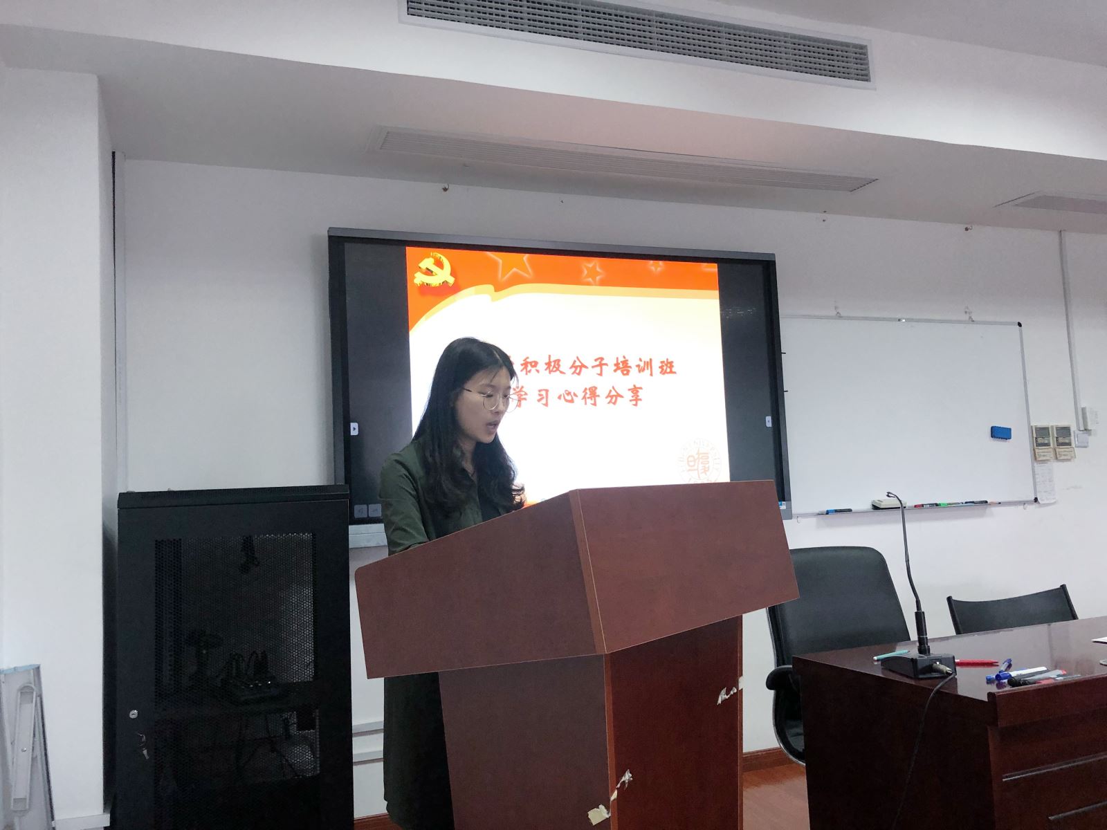入党积极分子培训班学员以学习小组为单位,分享了培训学习与实践体悟。入党积极分子们表示在为期一个多月的学习和实践中收获颇丰,通过多次专题报告和讲座,学员们对党史、国情有了更清晰的把握,理论知识水平有了一定的提高。在实践参访和小组活动中,学员们一同回顾共和国70年的历史进程,追忆老一辈无产阶级革命家的光荣事迹,全方位多角度地了解了中国共产党发展的光辉历程,进一步端正了自己的入党动机、明确了努力的方向。在最后,大家表示在今后的学习和生活中要时刻以党员的标准严格要求自己,承担起青年的时代责任,学好外国语,做好中国人,讲好中国故事,争取早日入党。
