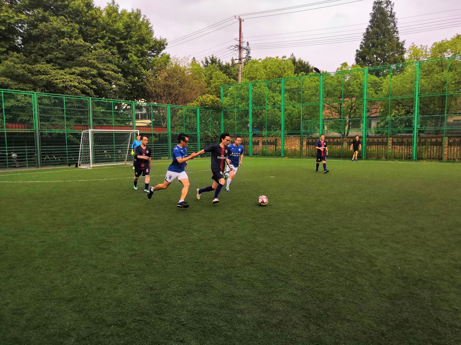 首场比赛,虽为试手,但我院队员已显示出不俗的实力。张绪华老师守门可谓严阵以待、固若金汤,是球队坚强的堡垒。邹波、郭一诚、王亚鹏老师都是绿荫宿将,球技高超,是球队的栋梁。小将陈豪表现也可圈可点,日后大有可为。