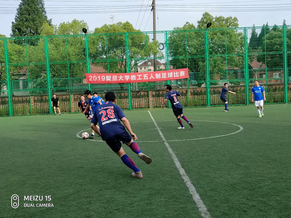 2019年6月11日下午5时,复旦大学教工五人制足球比赛正式拉开帷幕,我院代表队首场比赛对决国务学院。在队长姜宝有老师的带领下,外院队员们齐心协力,奋力拼杀,虽然实力远逊对手,但健儿们临强不惧,顽强迎战,经过坚韧的较量,终于上下半场各进一球,虽负于对手二分,但虽败犹荣,赛出了外院的团结凝聚精神,显示了外院男儿蓬勃进取、永不服输的气概。