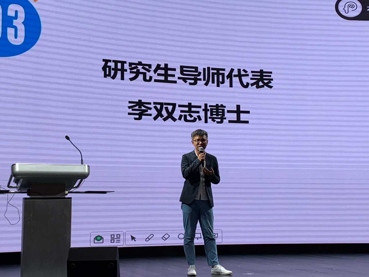 德文系李双志老师代表研究生导师发言,他祝福新生们能在复旦就读的时光里有阅读与思考的乐趣,探索与创造的乐趣和生活的乐趣;通过分享自己的国外深造经历,鼓励大家既珍惜出国交换学习的机会,也好好利用校内一流国际学者来访的交流机会,在复旦广泛接触世界,走向世界则做复旦的亮丽风景;最后,他用自己改写的两句古诗“白日放歌无需酒,青春作伴好读书”寄语新生。
