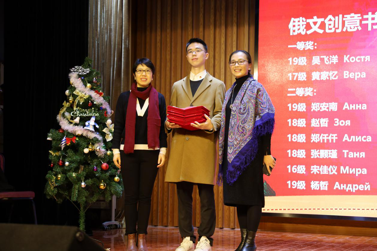 晚会进行到高潮时,白桦俄语社为复旦大学俄文系全体教师准备了精心制作的礼物——照片册。即将毕业的四年级学生也为全体教师致感谢词并赠送礼物。而俄文系老师也为12月份俄文系举办的一系列趣味比赛——“俄文创意书写大赛”、“作文兼演讲比赛”、“俄罗斯文学知识竞赛”、“趣味词汇大赛”的获奖者颁发获奖证书。