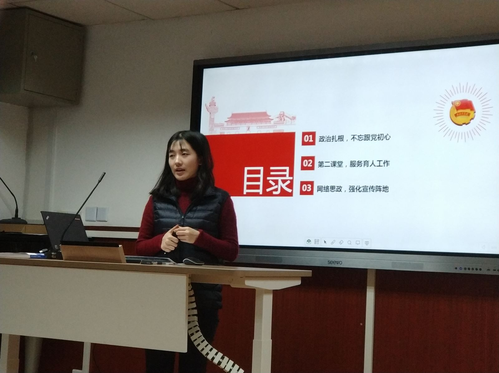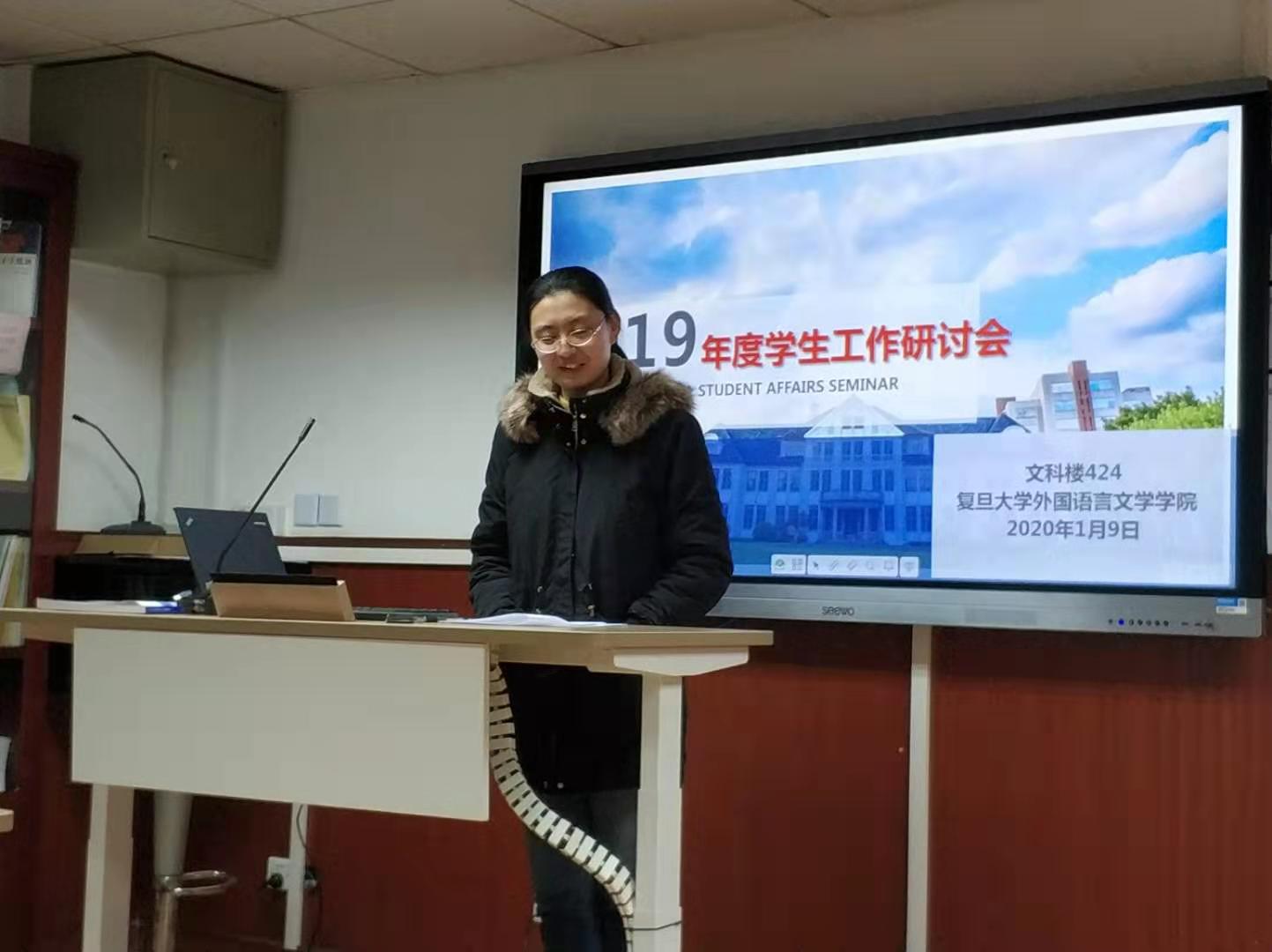 2020年1月9日,外文学院分党委在文科楼424会议室举行2019年度学生党支部述职暨学生工作研讨会,学院党政领导、分党委委员、各系负责人和教师代表、教学管理办公室相关教师、学工办全体辅导员、学生党支部书记等参会。