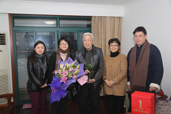 1月6日下午,市文联党组书记、专职副主席宋妍,市文联专职副主席、秘书长沈文忠,上海翻译家协会副会长袁莉、副秘书长梁珺霞等一同前往着名翻译家、复旦大学杰出教授陆谷孙家中,祝贺他荣获第六届上海文学艺术奖“杰出贡献奖”,并为他送上荣誉奖杯,感谢他为我国教育事业、特别是词典编篆事业做出的重大贡献,并祝愿他身体健康。陆谷孙谦逊地表示,荣誉属于整个团队中的每个人,个人受之实在是有愧。陆谷孙教授是《英汉大词典》主编,精通莎士比亚文学,学术成果丰硕。他在生活中低调谦和,淡泊名利,对工作却追求完美,年逾古稀的他,目前每天还在从事《中华汉英大词典》的编纂工作,这一工作自1991年开始已经20多年。(转自:上海翻译家协会网站)