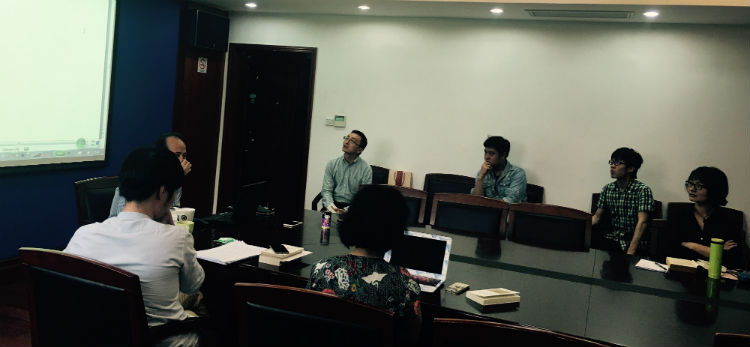 两位老师的讲座完毕后,参加座谈会的师生展开了积极、热烈的讨论。英文系的丁骏老师、包慧怡老师,德文系的姜林静老师都对贝克特诗歌的翻译和理解发表了自己的见解。大家畅所欲言,友好辩论,时间在不知不觉中过去了两个多小时。五点三十分,大家在意犹未尽中结束了交流。