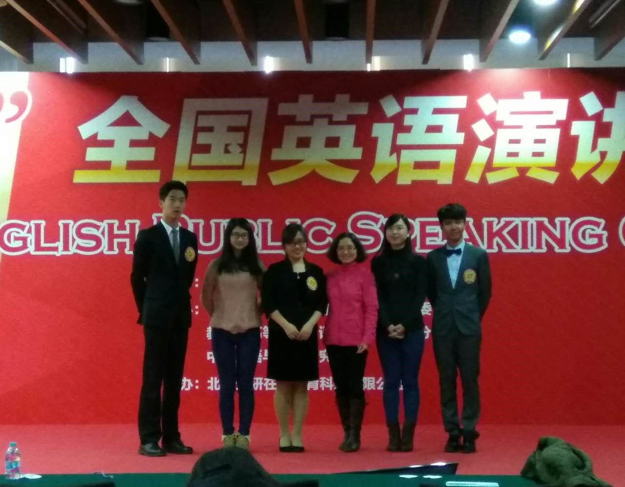 12月11日2016年“外研社杯”全国英语演讲大赛总决赛在北京落下帷幕。我院刘涟(15级英文系)、王屹煊(16级英文系)两位同学(指导教师 时丽娜)分别荣获“季军”和“一等奖”,卢一志(16级中文系硕士研究生)、廖素安(15级社会学系本科生)两位同学(指导教师 单理扬)分获二等奖和三等奖。