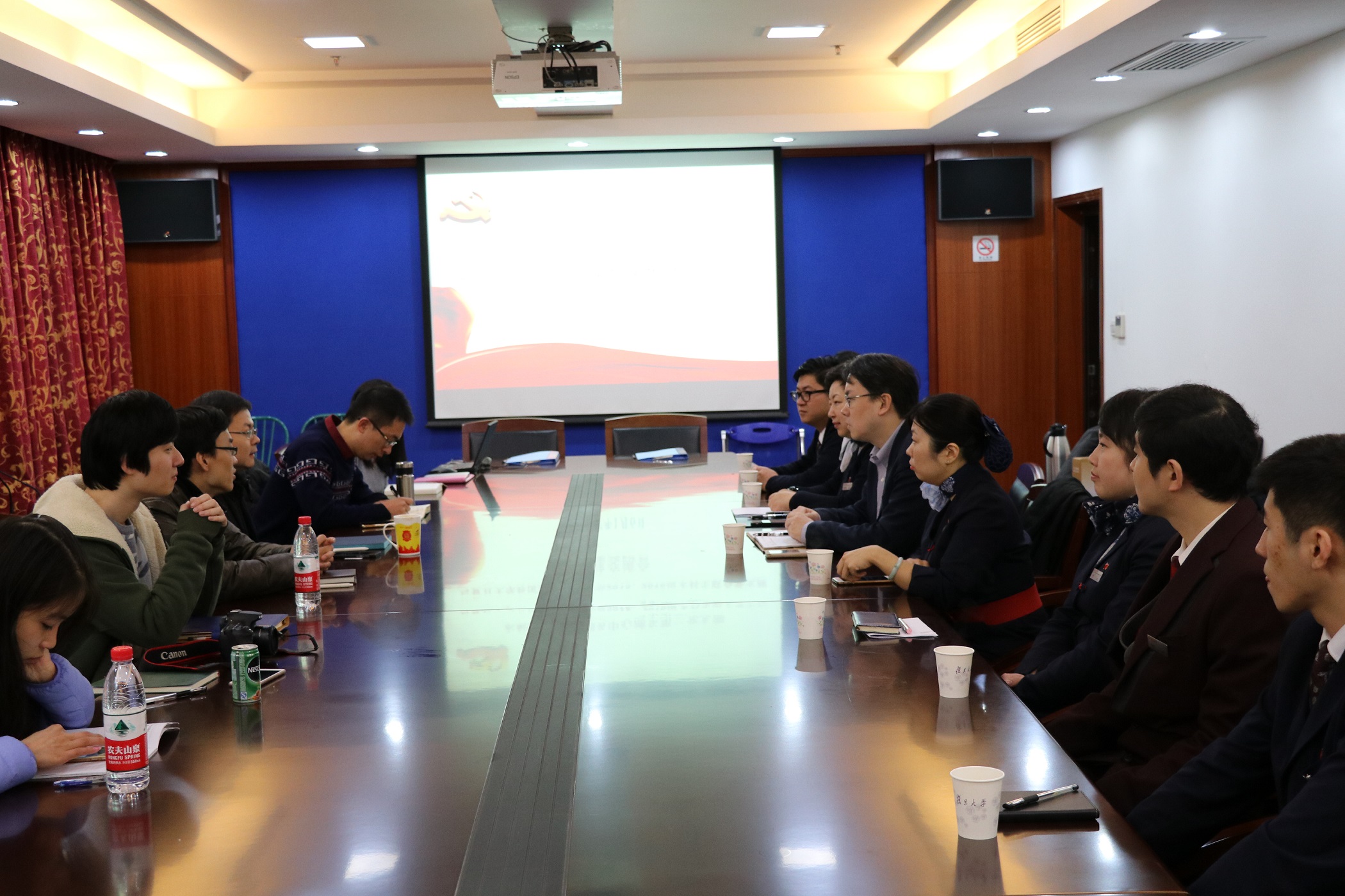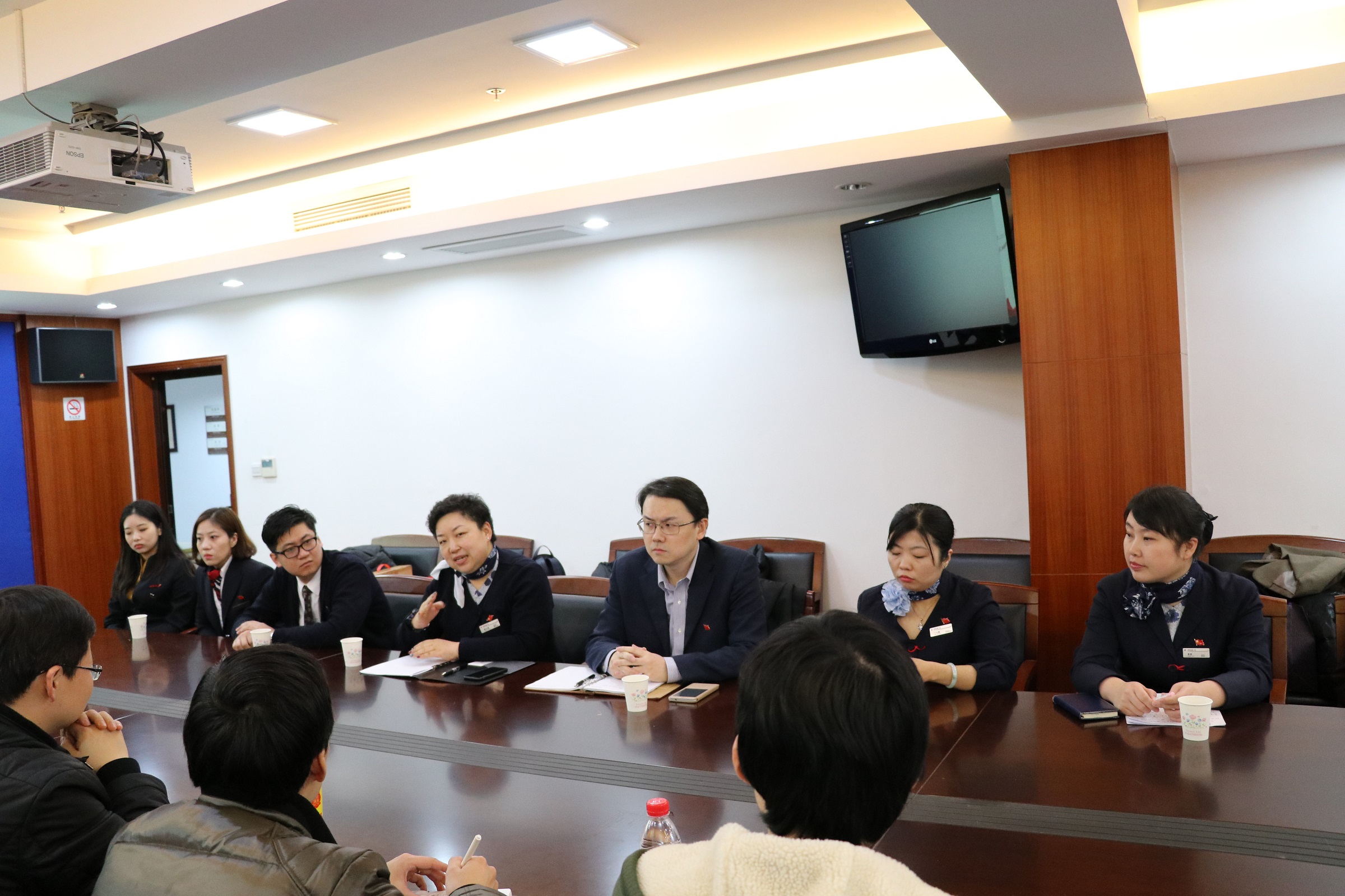 双方首先进行座谈,介绍各自单位及共建支部的情况。骆伟介绍了东航的国际化战略和外航服务中心的基本情况,并表达了对于各类外语人才、特别是是小语种人才的需求,提出以共建为契机,推动双方在人才、外语和国际文化交流等方面开展进一步合作。赵昕介绍了外文学院和学生党建工作的基本情况,并表示外文学院历史悠久,长期以来培养了众多的专业人才,希望未来加强彼此合作,发挥各自优势,促进双方党建和业务工作的共赢发展。