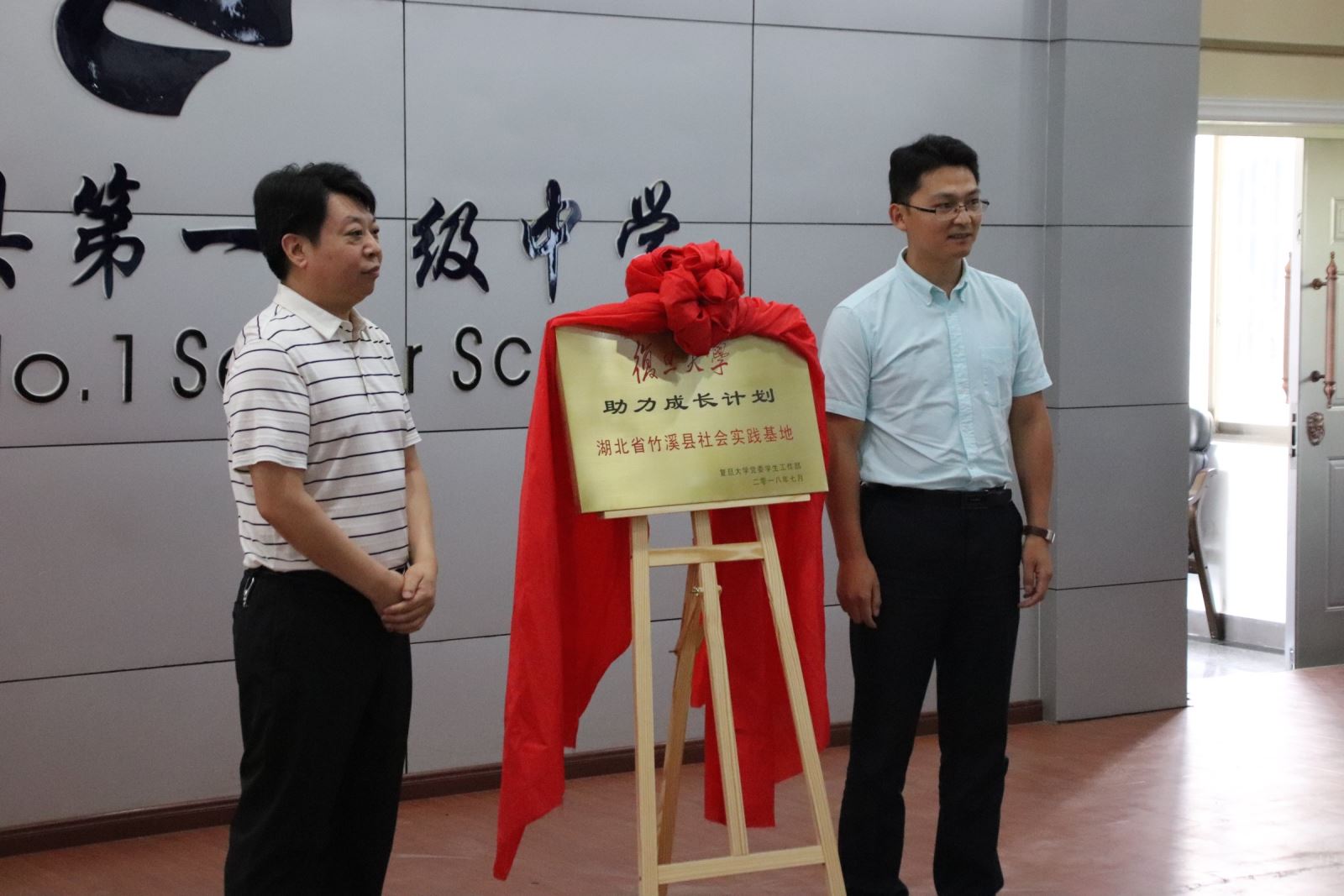 最后,竹溪县副县长姚延兴主持举行“复旦大学助力成长计划社会实践基地”揭牌仪式,竹溪县委常委、组织部长胡贤德和复旦大学党委学生工作部副部长于专宗共同为社会实践基地揭牌。最后,杨巧燕副县长在发言中提议与复旦大学加强合作,打好脱贫攻坚战。于专宗副部长感谢了所有学员和志愿者,并且对助力成长社会实践基地提出了期望和要求。