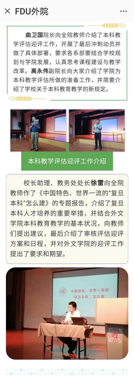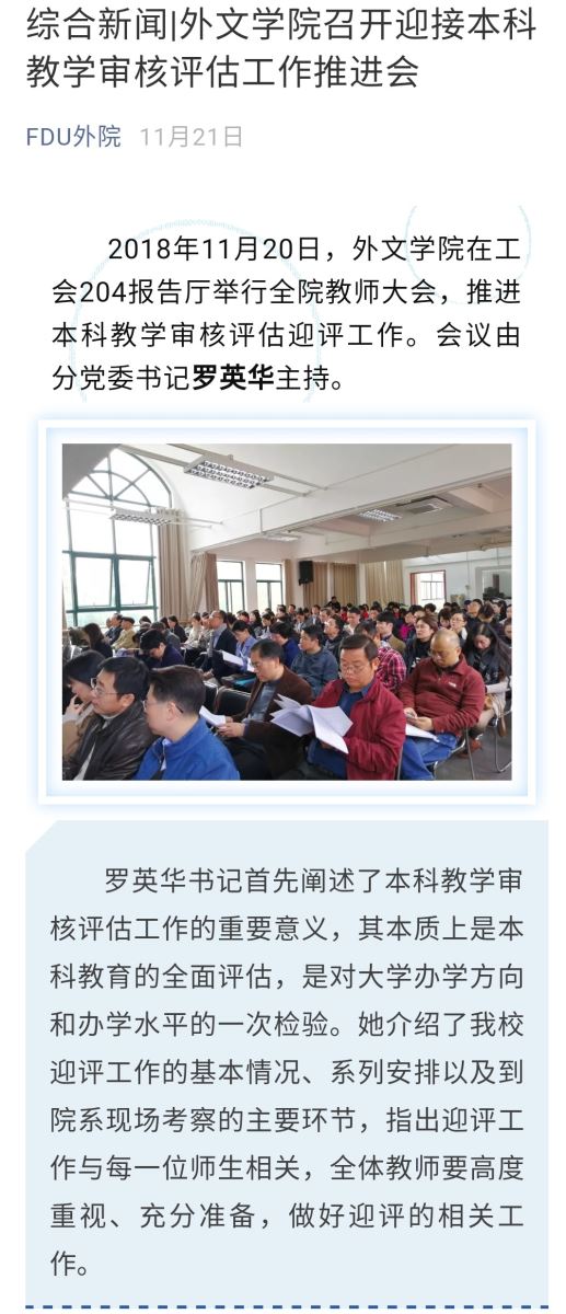 复旦大学党委副书记许征和教务处副处长徐珂到外文学院检查本科迎评情况