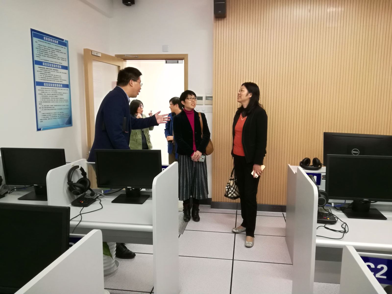 复旦大学党委书记焦扬、副校长徐雷视察语言学习中心,党委副书记许征视察语音实验室