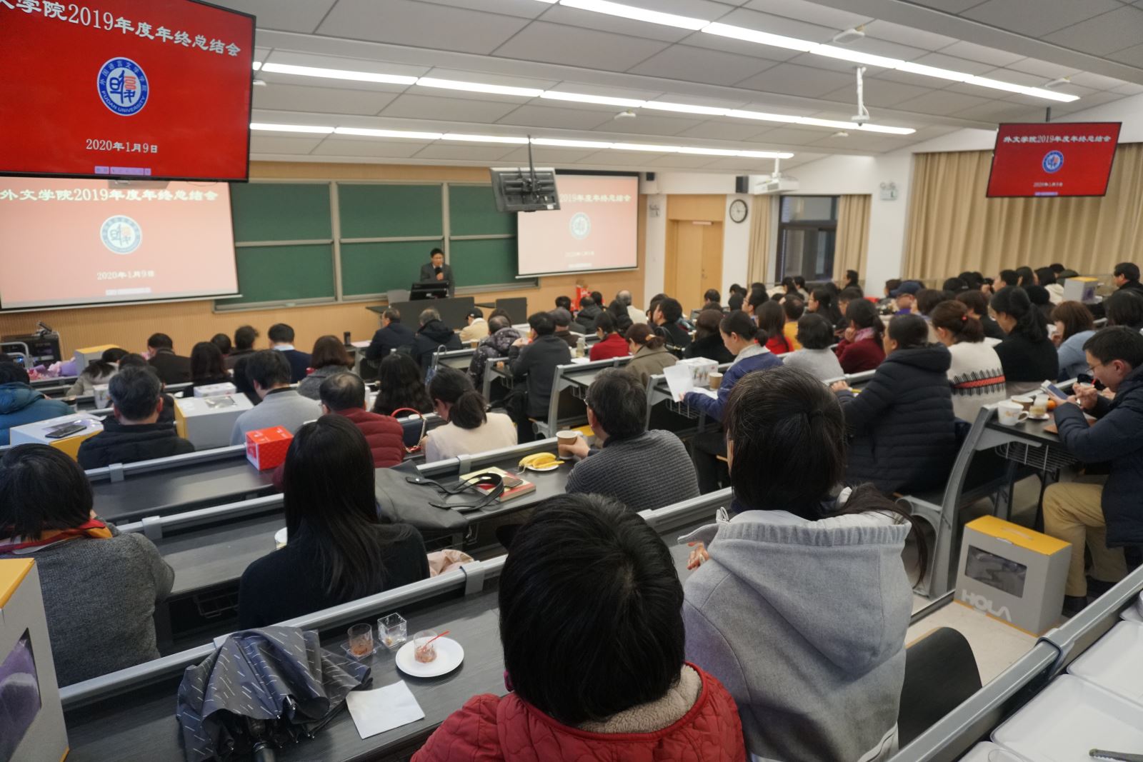 2020年1月9日下午,外文学院在第六教学楼6112教室召开全院教师大会,会议由学院分党委书记罗英华主持。