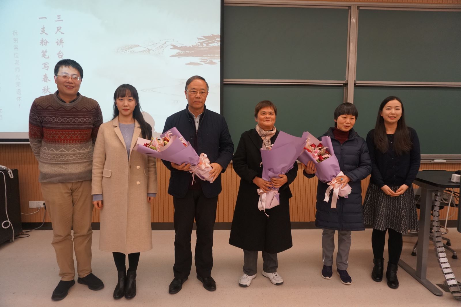 各系部青年教师代表向老教师代表献上证书和鲜花,大家用热烈的掌声向为学院教学科研默默奉献的老教师们表达崇高的敬意。