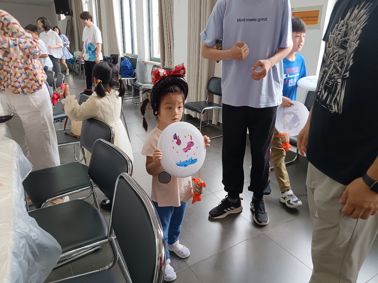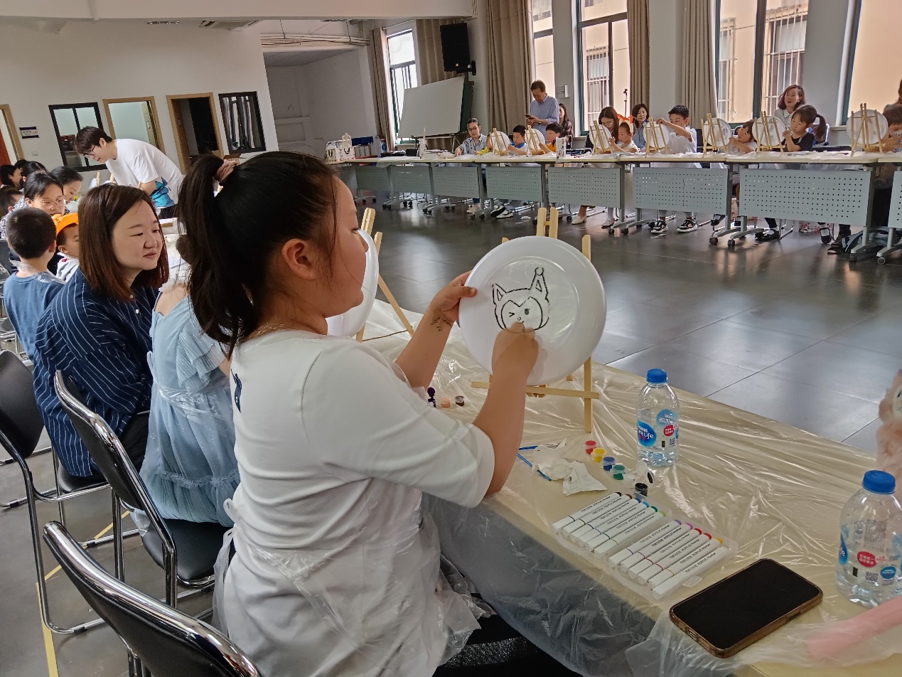 泡泡游戏结束后,孩子们进入了DIY环节:自绘飞碟画。在家长们的引导下,孩子们放飞想象的翅膀,舞笔弄彩,用稚嫩的小手描绘心中的蓝图,一幅幅充满童趣的油彩画跃然碟面上。孩子们的作品有的抽象,有的奔放,有的天真,有的粗朴,内容丰富多彩,主题百花齐放。